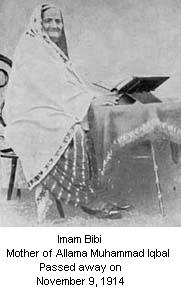 Inam bibi Mother of Allama Muhammad Iqbal Passed away on 9 November, 1914