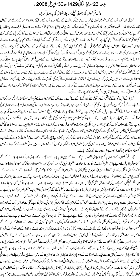 - 005.Bank Qarzo ki vasoli kayliay zabta ikhlaq ki pabandi karay,Jang ,30-04-2008.gif